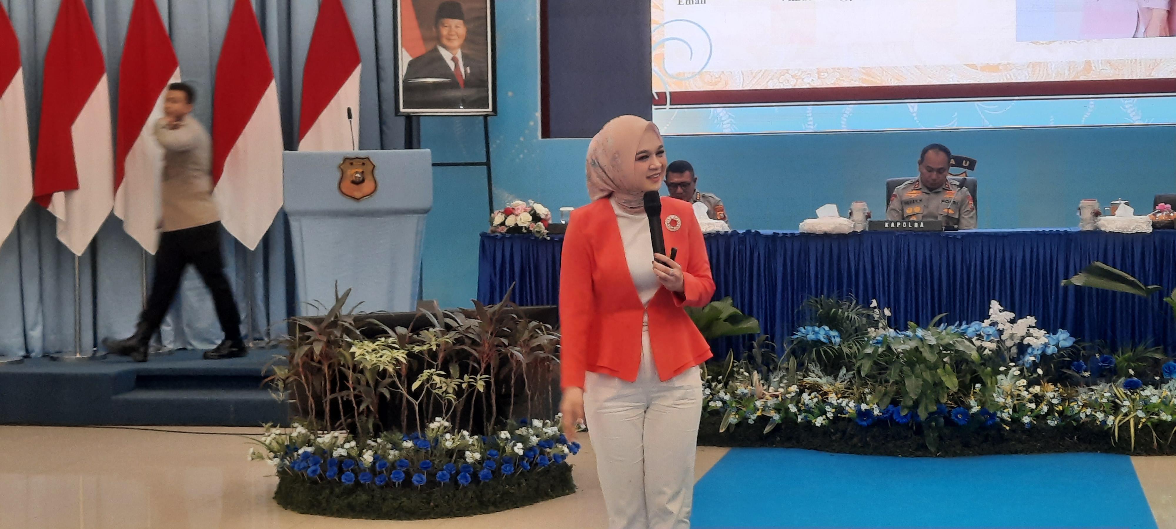 Polda Riau menghadirkan Linda Nur Lestari praktisi komunikasi dan trainer public speaking profesional yang aktif memberikan pelatihan di berbagai instansi, khususnya di lingkungan Kepolisian Daerah (Polda) Riau dan jajarannya.