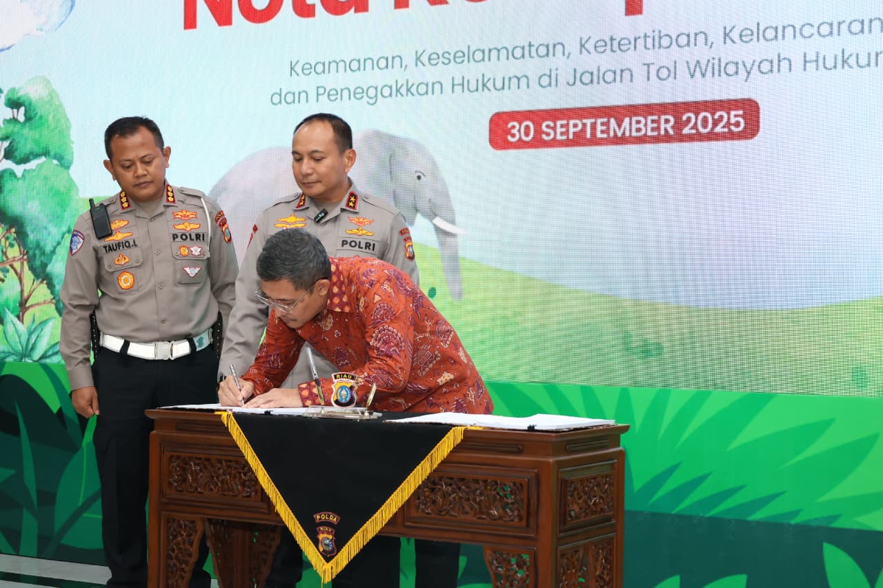 Penandatanganan berlangsung di Mapolda Riau, Senin (30/9/2025), dan disaksikan oleh jajaran pejabat utama Polda Riau, perwakilan manajemen Hutama Karya, serta komunitas Gerakan untuk Kesejahteraan Tunarungu Indonesia (Gerkatin).