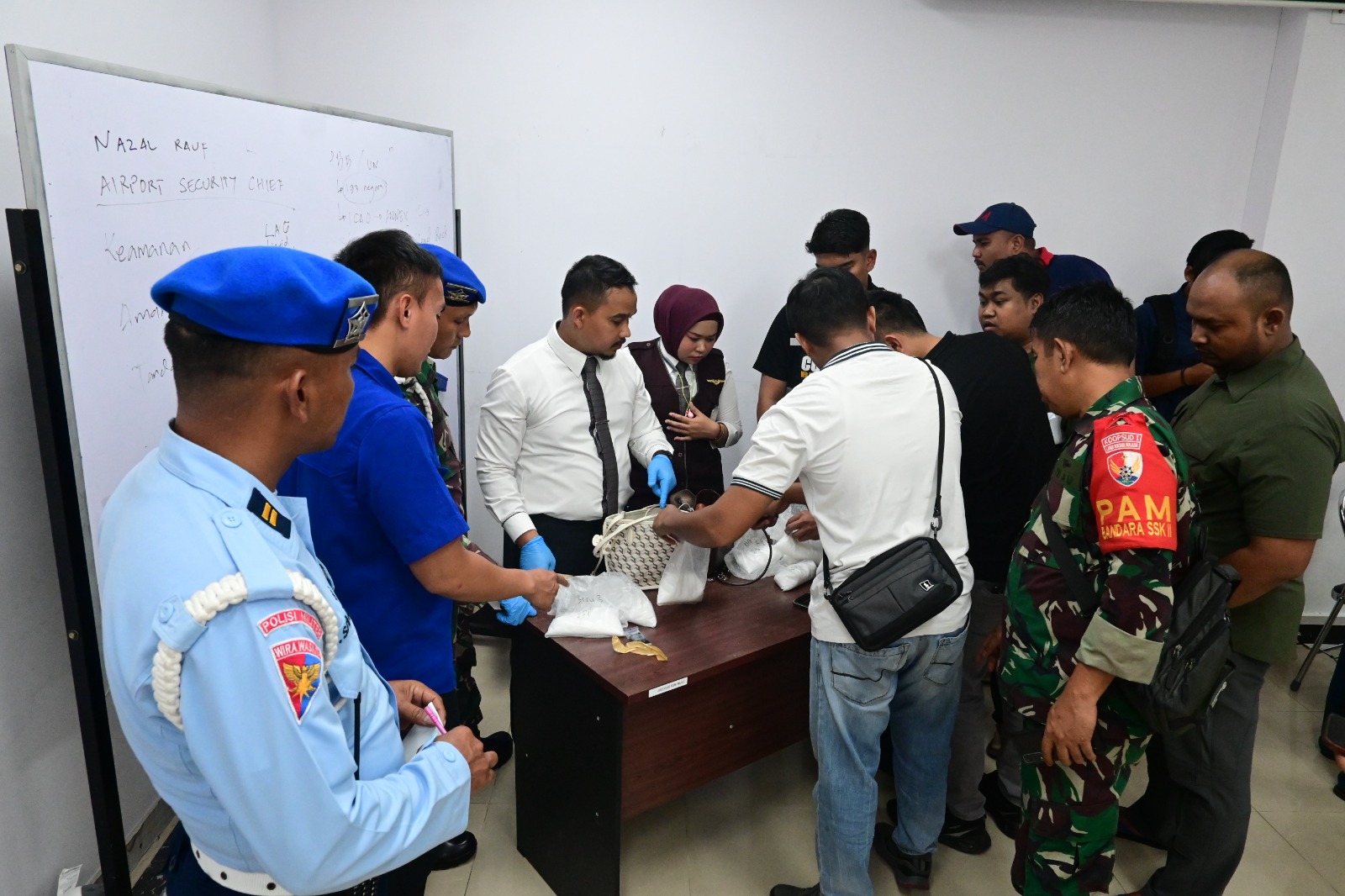 Petugas Avsec dan Lanud RSN Gagalkan Penyelundupan 2 Kg Sabu di Bandara SSK II Pekanbaru