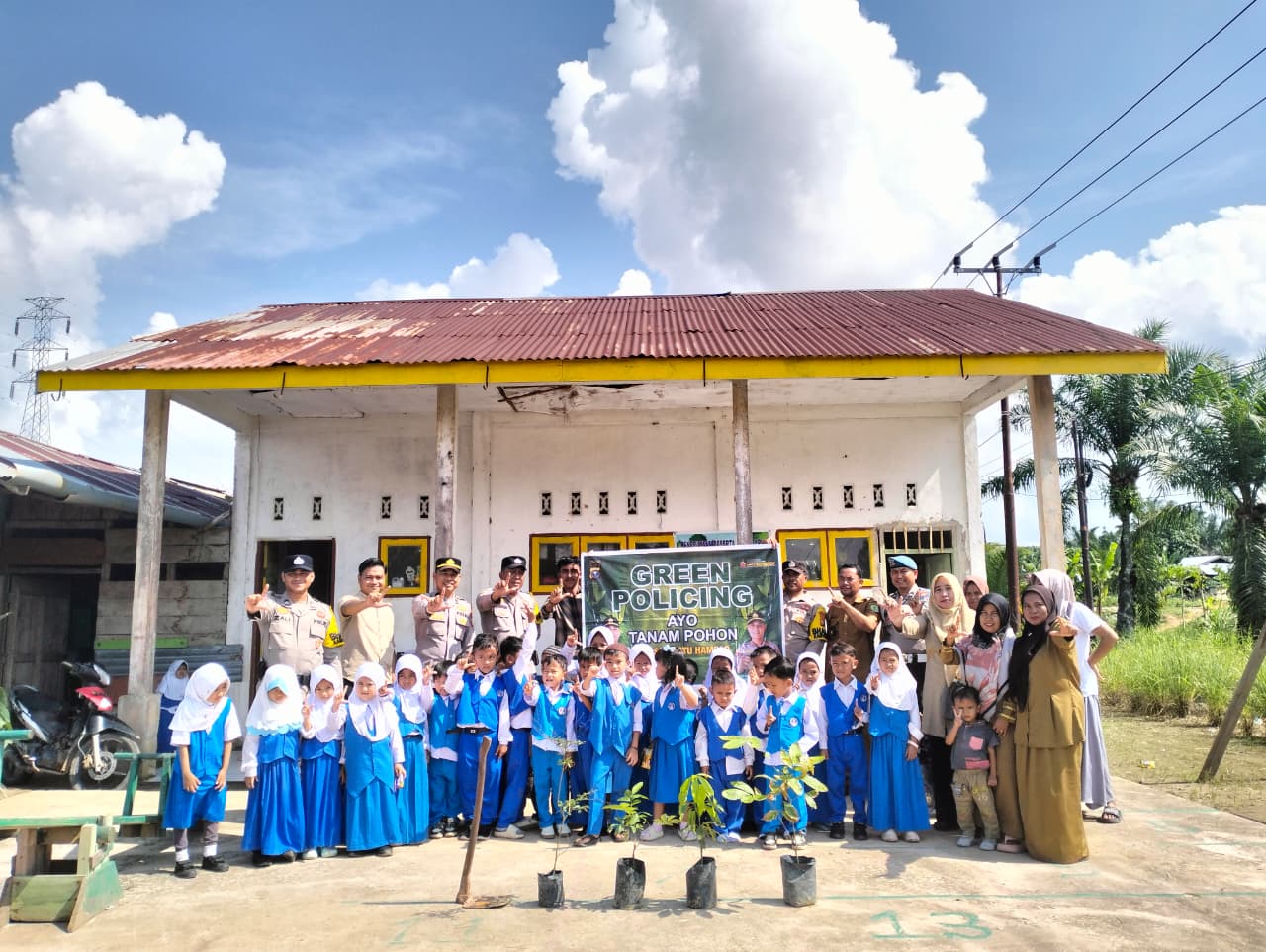 FN Indonesia Rokan Hilir – Dalam upaya mendukung program unggulan Kapolda Riau Irjen Pol Herry Heryawan, tentang Green Policing, personil Polsek Batu Hampar melaksanakan kegiatan sosialisasi dan penanaman bibit pohon di lingkungan sekolah.