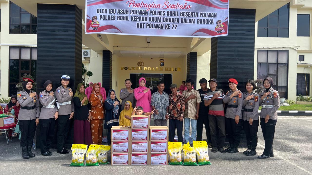 Ibu Asuh Polwan Rohil Pimpin Penyaluran Bansos untuk Kaum Dhuafa di Hari Jadi Polwan ke-77