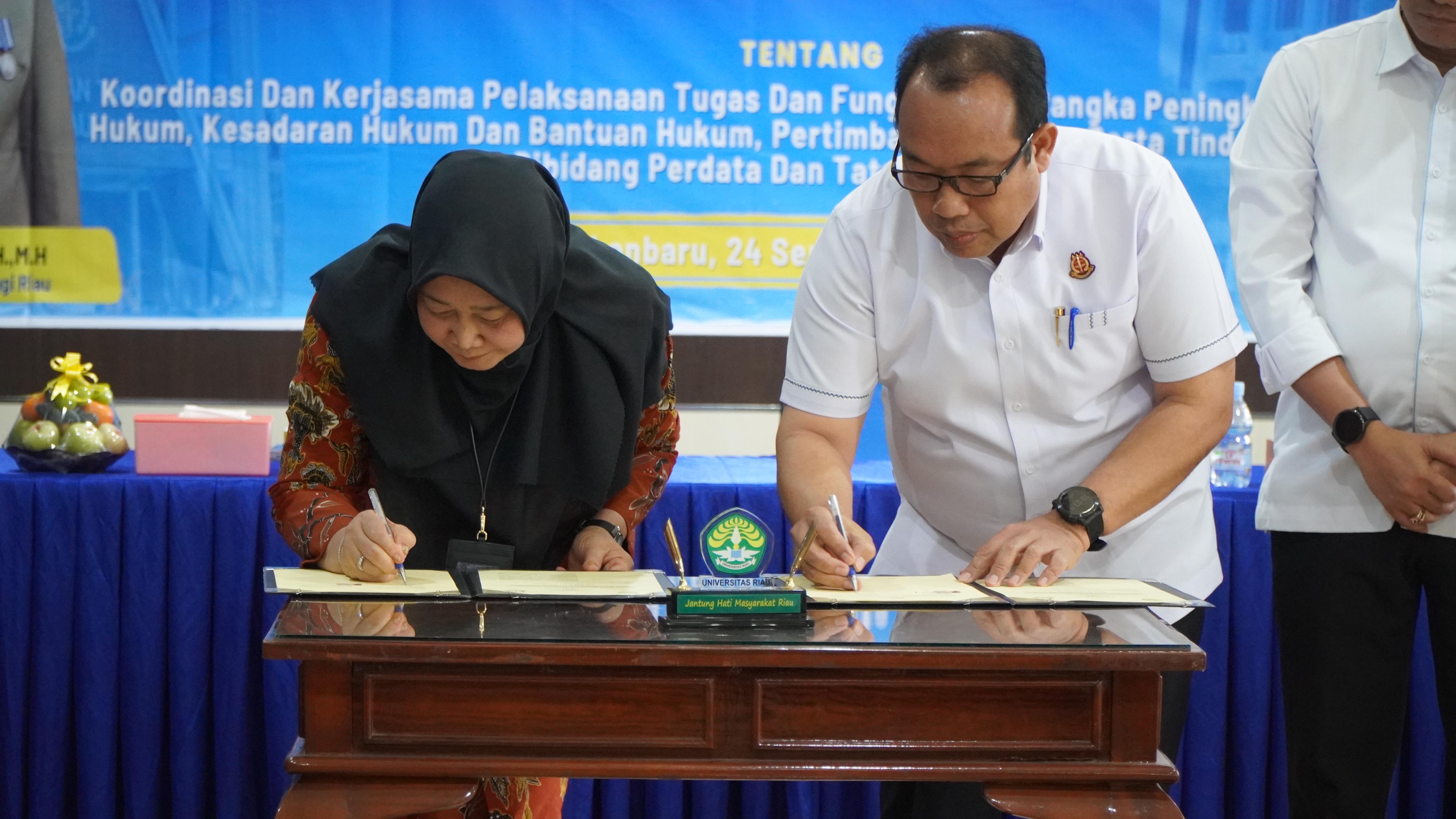 Penandatanganan dilaksanakan di Balairung Siak Sri Indrapura Universitas Riau, Pekanbaru.