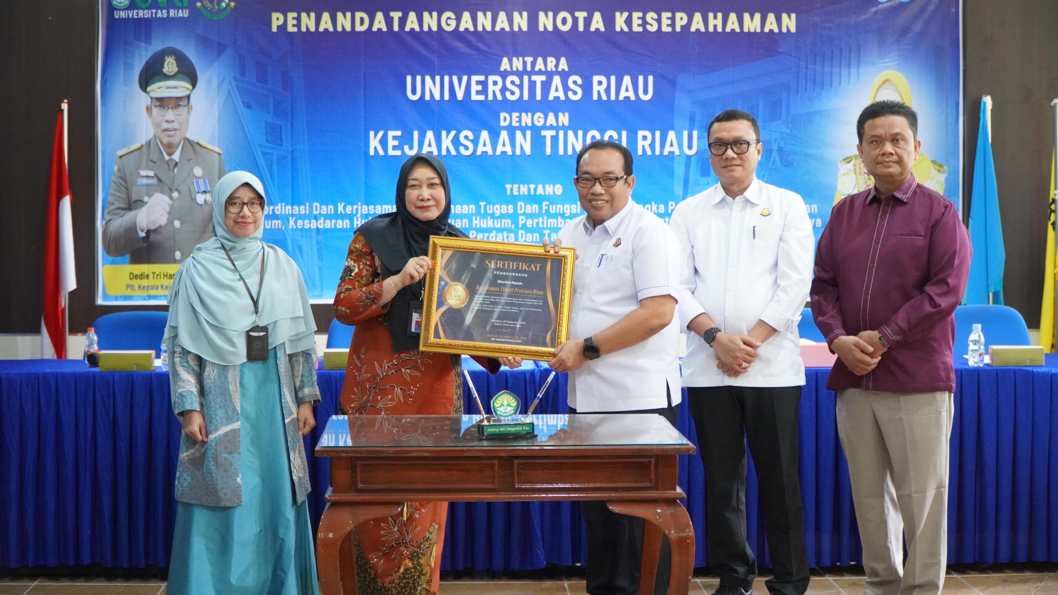 "Saya terima kasih sekaligus apresiasi kepada Universitas Riau atas kepercayaan yang diberikan kepada Kejaksaan sebagai mitra, khususnya dalam penyelesaian permasalahan hukum perdata dan tata usaha negara," ucap Plt. Kajati Riau Dedie Tri Hariyadi dalam sambutannya.