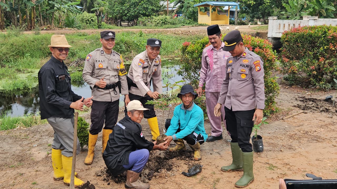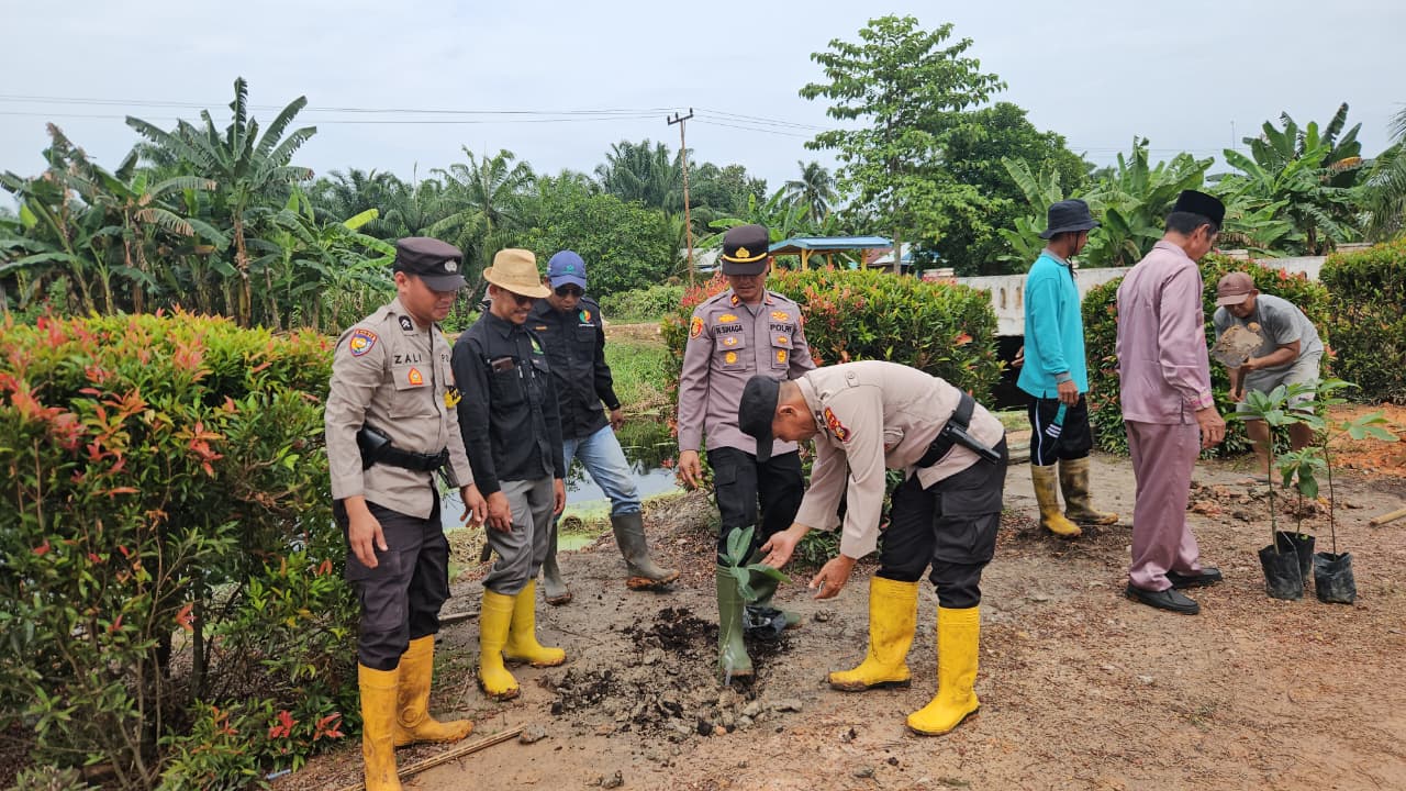 FN Indonesia Rokan Hilir – Polsek Batu Hampar, Polres Rokan Hilir, melaksanakan kegiatan sosialisasi program Green Policing sekaligus penanaman bibit pohon di lingkungan Masjid Al-Ihsan, Kepenghuluan Bantaian Baru, Kecamatan Batu Hampar, Selasa (23/9/2025) pagi.