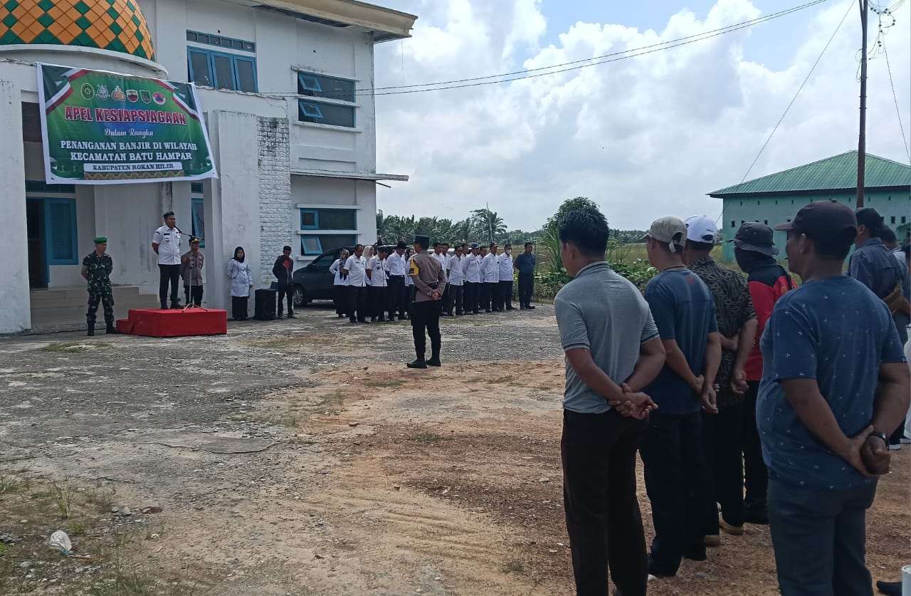 FN Indonesia Rokan Hilir – Dalam rangka mengantisipasi potensi bencana banjir yang dapat terjadi sewaktu-waktu di musim penghujan, Kecamatan Batu Hampar, Kabupaten Rokan Hilir, melaksanakan Apel Kesiapsiagaan Penanganan Banjir pada Minggu (30/11/2025). Kegiatan berlangsung di halaman Mapolsek Batu Hampar, Jalan Lintas Bagan Siapiapi, Kelurahan Bantaian Hilir.