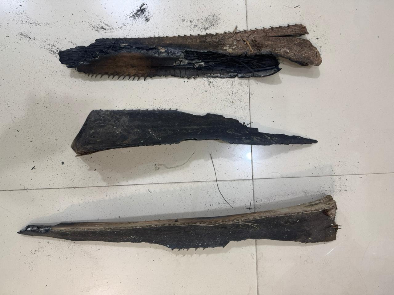 Dari lokasi kejadian, polisi turut mengamankan sejumlah barang bukti, antara lain, 1 ember warna hitam, 3 batang pelepah sawit bekas terbakar, 1 puntung rokok merek Gudang Garam Merah, dan 1 bungkus rokok merek yang sama.