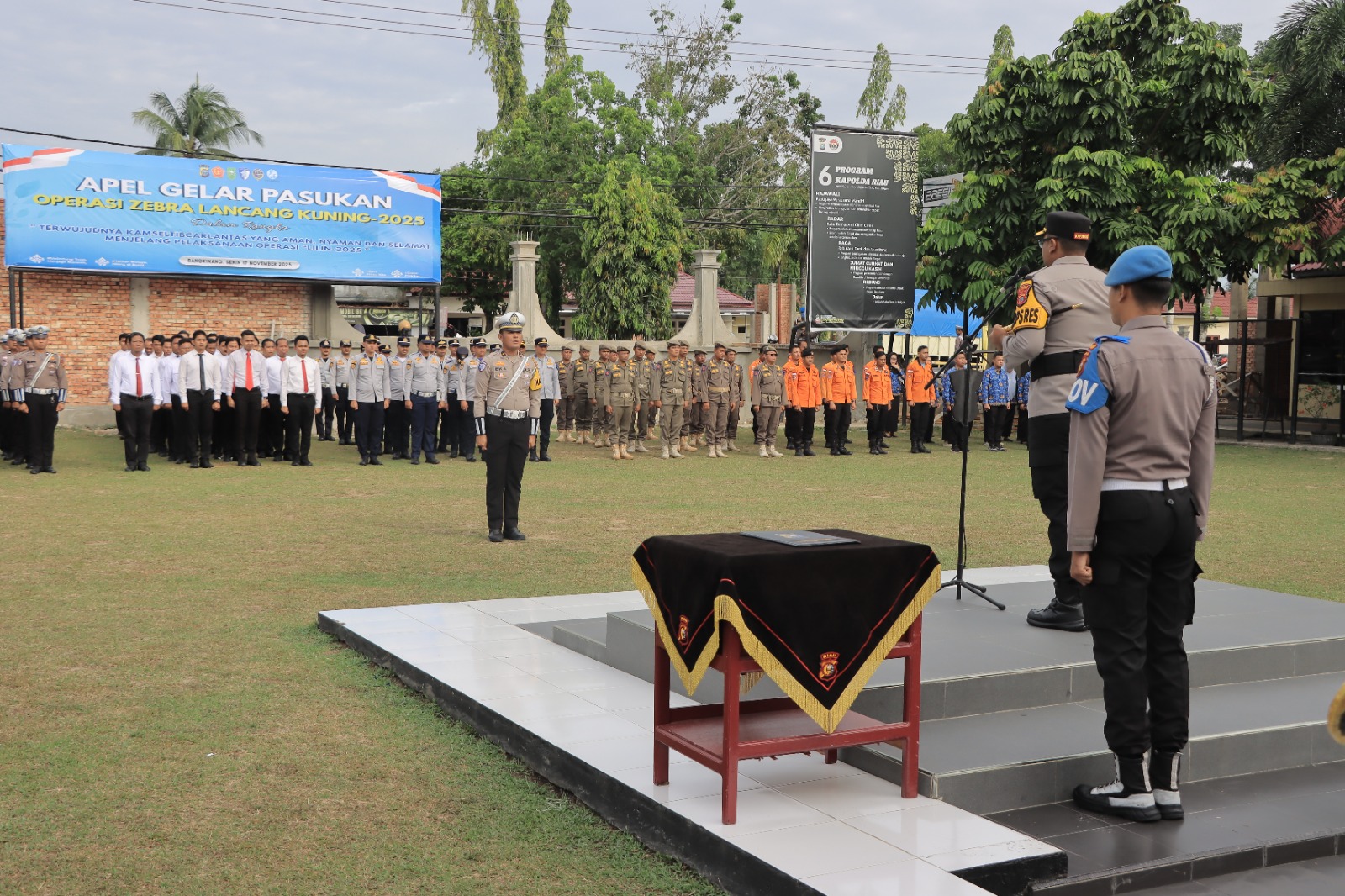 FN Indonesia Kampar - Polres Kampar menggelar Apel Gelar Pasukan Operasi Zebra Lancang Kuning 2025 pada Senin (16/11/2025) di Lapangan Upacara Mapolres Kampar. Apel besar ini menjadi penanda dimulainya operasi yang bertujuan meningkatkan keamanan, keselamatan, ketertiban, dan kelancaran lalu lintas (Kamseltibcarlantas) menjelang akhir tahun.
