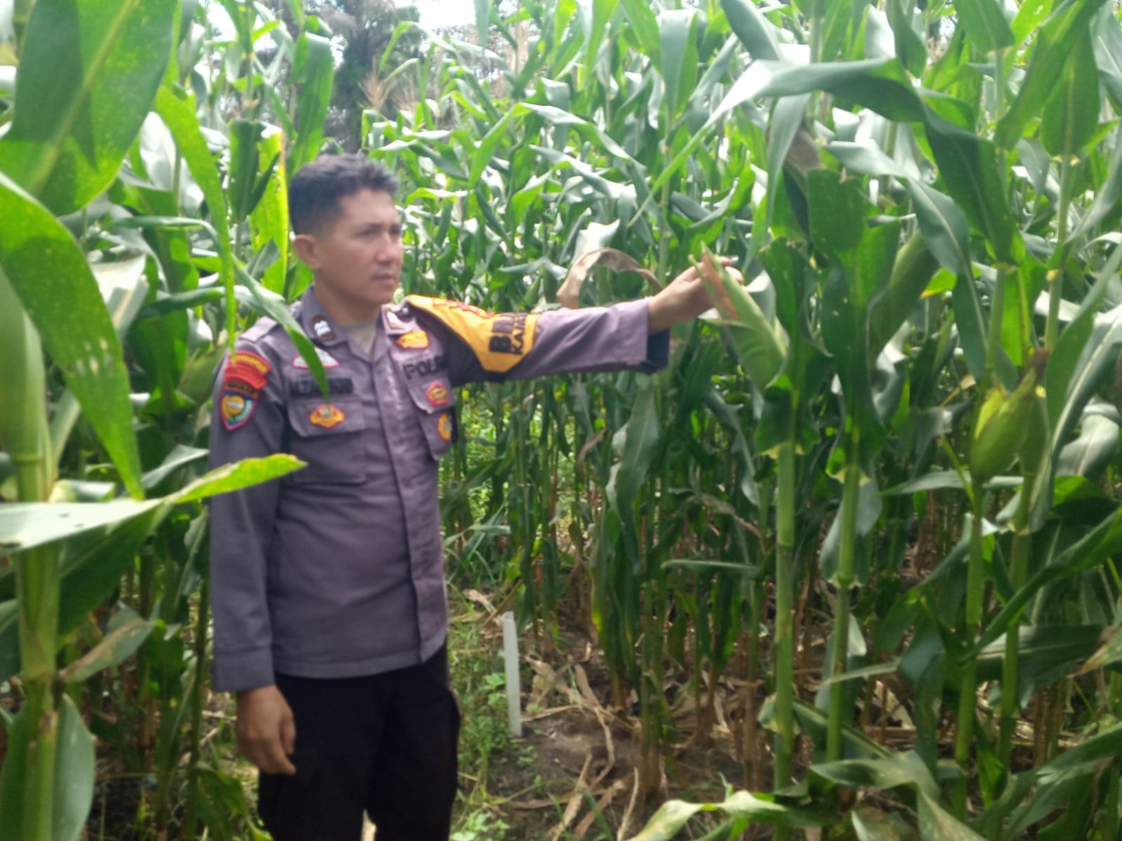 Pengecekan dilakukan oleh Bhabinkamtibmas Belutu, Aiptu M. Zalukhu, bersama Ketua Kelompok Tani Garut Mandiri, Budiman. Lahan monokultur tersebut ditanami benih jagung pipil sebanyak 30 kilogram dan saat ini telah memasuki usia tanam 85 hari.