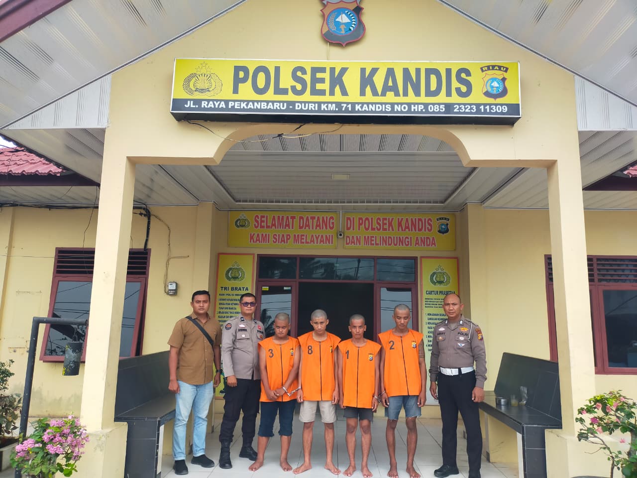 Berbekal informasi dan keterangan yang dikumpulkan dari korban, Tim Opsnal Reskrim Polsek Kandis langsung bergerak cepat. Dalam operasi penangkapan yang berlangsung pada Selasa malam (28/10/2025), polisi berhasil menciduk empat terduga pelaku di dua lokasi berbeda di Kecamatan Kandis.