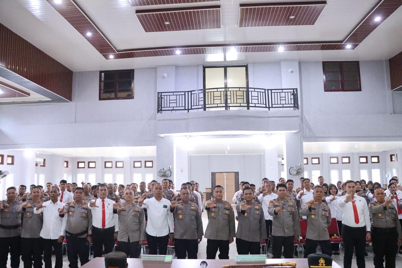 Hadir dalam kegiatan tersebut Wakapolres Rokan Hilir Kompol Rikki Operiadi, para Kabag, para Kasat, perwira, dan anggota Polres Rokan Hilir.